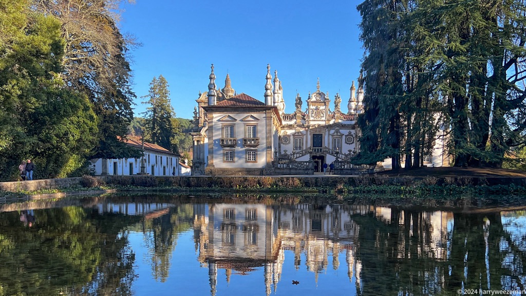 Dit landhuis dat in 1744 gereed kwam schijnt het mooiste huis van het Iberisch schiereiland te zijn. Het zou kunnen. Het heeft prachtige tuinen en voor 18 euro mag je die en het huis bezichtigen. Het is nu van een stichting opgericht door D Francisco de Sousa Botelho de Albuquerque. Je zal dat toch iedere keer op allerlei papieren moeten invullen. Maar goed deze man ik meen de 11e generatie schonk dus een groot deel van zijn bezit aan de stichting om het landgoed voor het nageslacht veilig te stellen.