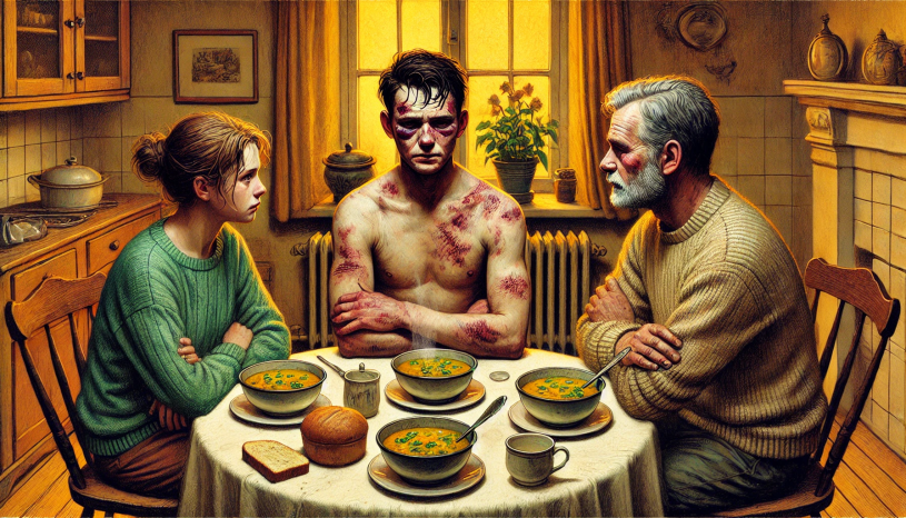 Een paar dagen later, in het kleine huisje van Ruben zaten ze bij elkaar met een kop stevige erwtensoep voor zich. Bert zat onder de blauwe plekken en had gekneusde ribben, maar hij glimlachte zwak. Ik dacht echt dat het mijn einde was, zei hij zacht. Die inktvis… hij redde ons.