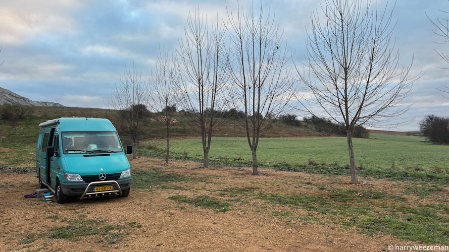 De plek is mooi, we staan er de hele nacht alleen en pikkedonker.