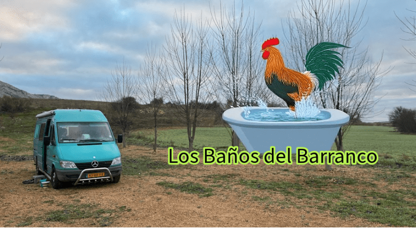 We zijn in een gebied van thermale bronnen. Een zo’n plekje waar nog zo’n baño is ligt in de buurt van Aldea del Rey. Het ligt aan de rio Jabalon. Na 2,5 kilometer over een onverhard weggetje zien we het badje. Een prima plekje om een tijdje te verblijven.
