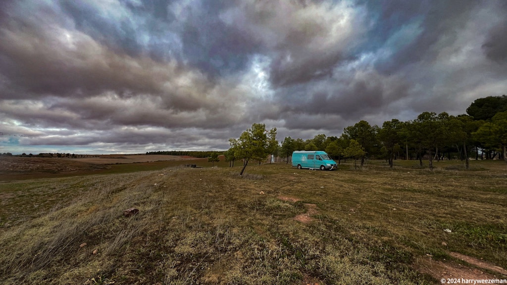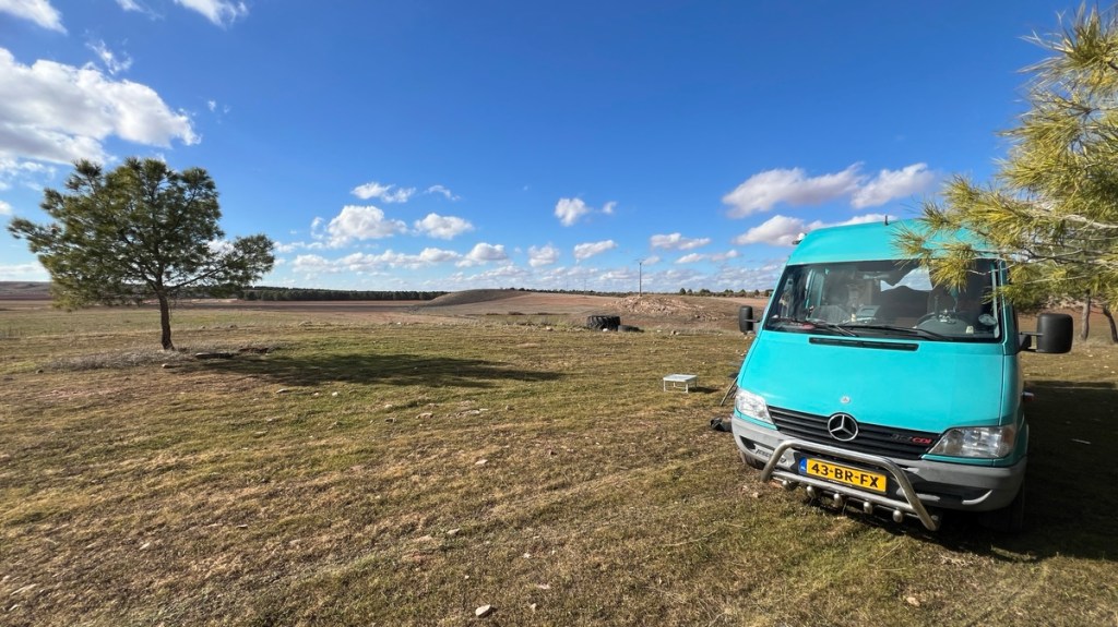 Het is vrijdag en markt. Dat is altijd wel leuk, een echte Spaanse markt voor de inwoners en niet zoals aan de costa’s voor de toeristen. Hier ook heel andere prijzen. We scoren 6 onderbroeken voor de prijs van 5 samen 5 euro. Voor de kraam/foodtruck die kip van de gril verkoopt staat een rij voor en wij sluiten aan. Heerlijk nog de hete kip in de sprinter verorberd.