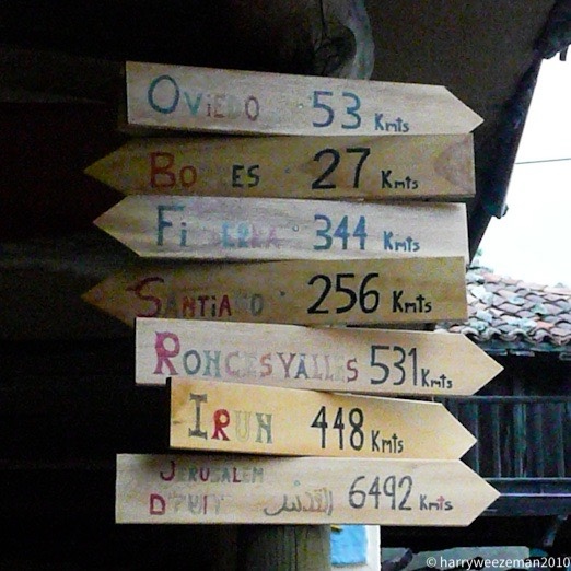 De prent is grappig en de wegwijzer ook Jerusalem 6494 km. 🙂