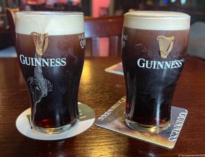 Het is altijd weer dringen om een plaatsje te bemachtigen bij de aankomstgate. Die zeven meter van Sprintertje werkt ook niet echt mee. Het lukt en nu even wachten………Ja daar is ze. Snel naar binnen, een eerste kus en rijden. We blijven de eerste dag in Dublin. Een parkeerplek aan het water en vast de buurt verkennen. Pubs genoeg. We zijn in Ierland en dan is een must: Guinness. In de pub is een ruimte waar ieder half uur een toekomstige bruid met haar vriendinnen staan te drinken. Het is een traditie, ze gaan van pub naar pub.