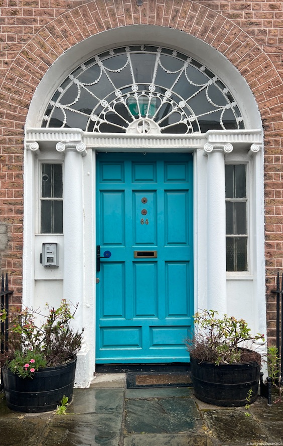 Felle kleuren: Rood, geel, blauw, groen – elke deur heeft een opvallende kleur, vaak contrasterend met de sobere grijze gevels. Sierlijke deurknoppen, messing brievenbussen, boogvormige bovenlichten (fanlights) en zuiltjes naast de deur. Georgische stijl: Deze deuren stammen uit de 18e en 19e eeuw, toen de stad veel elegante huizen bouwde in symmetrische, klassieke stijl.