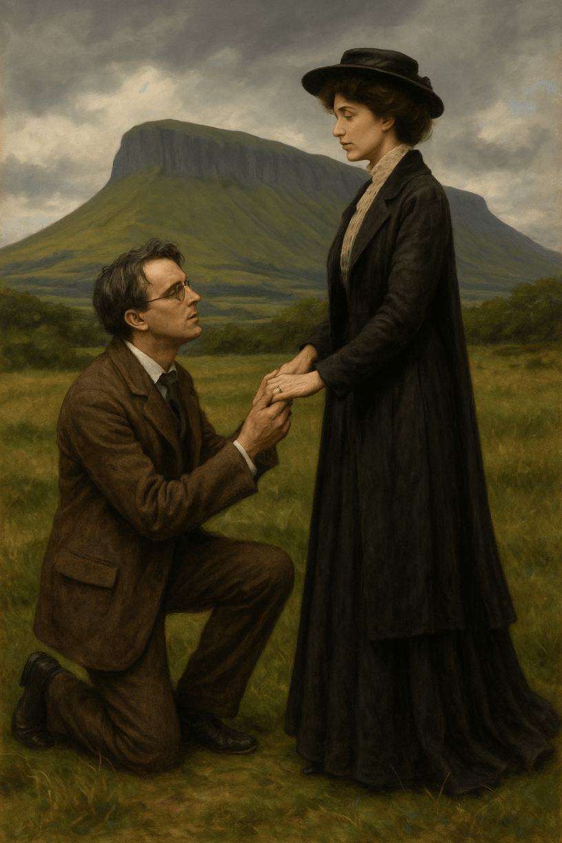 Maar wie Yeats écht gevormd heeft, is misschien nog wel Maud Gonne. Ze was beeldschoon, fel, politiek geëngageerd en alles wat Yeats niet was. En hij viel als een blok.