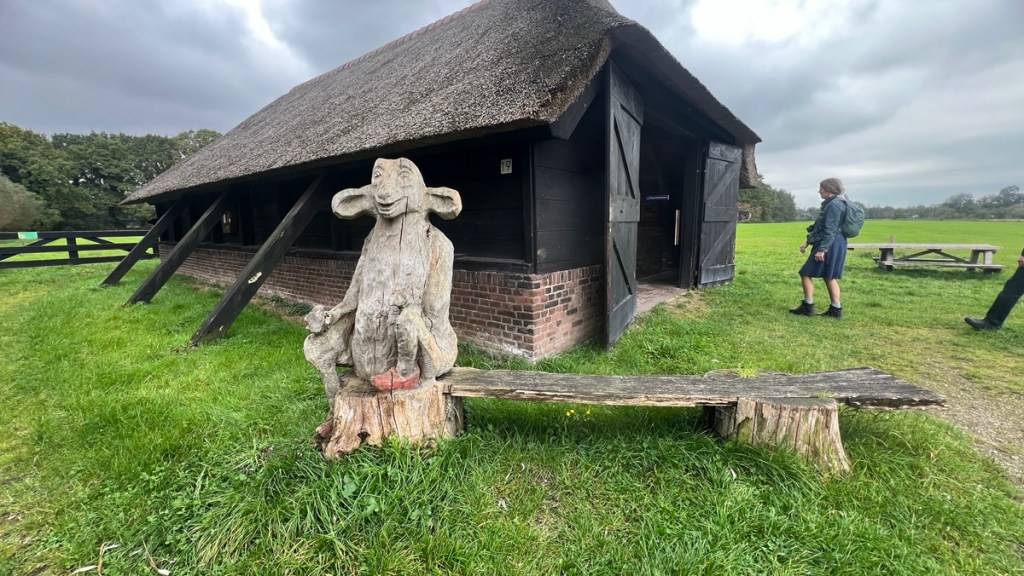 Het pad begint rustig, met een lange laan tussen oude eiken. In de verte hoor je het geluid van een tractor, verder niets. De geur van hooi en nat gras hangt in de lucht. We lopen over erven waar de kippen vrij rondscharrelen en waar het erfpad nog gewoon gedeeld wordt met de boer.