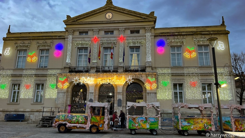 De stad is in kerstsfeer. Voor Spaanse begrippen zijn we te vroeg in de stad maar om zes uur begint het echt gezellig te worden. De lichten aan en veel mensen op straat.
