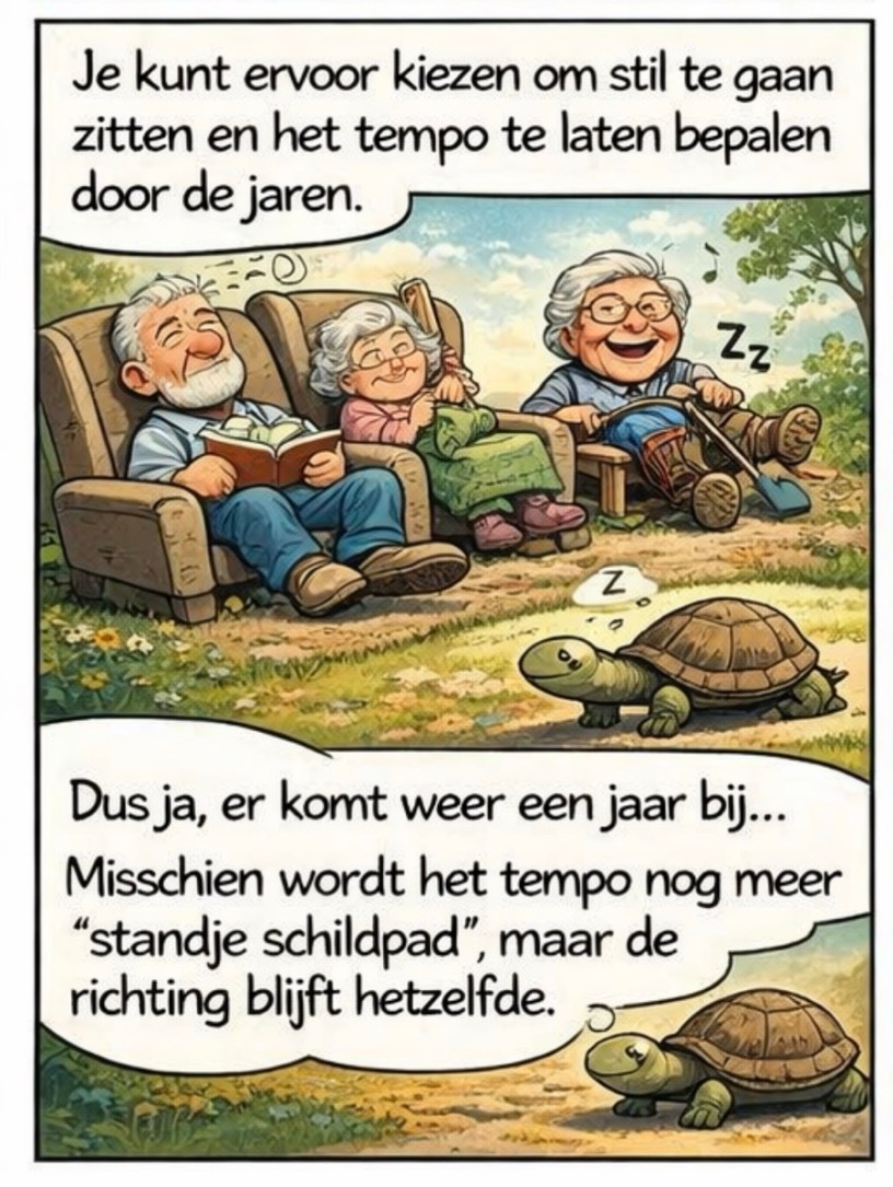 Dus ja, er komt weer een jaar bij. Dat verandert niets aan wat ik wil doen. Misschien wordt het tempo nog meer, standje schildpad, maar de richting blijft hetzelfde.